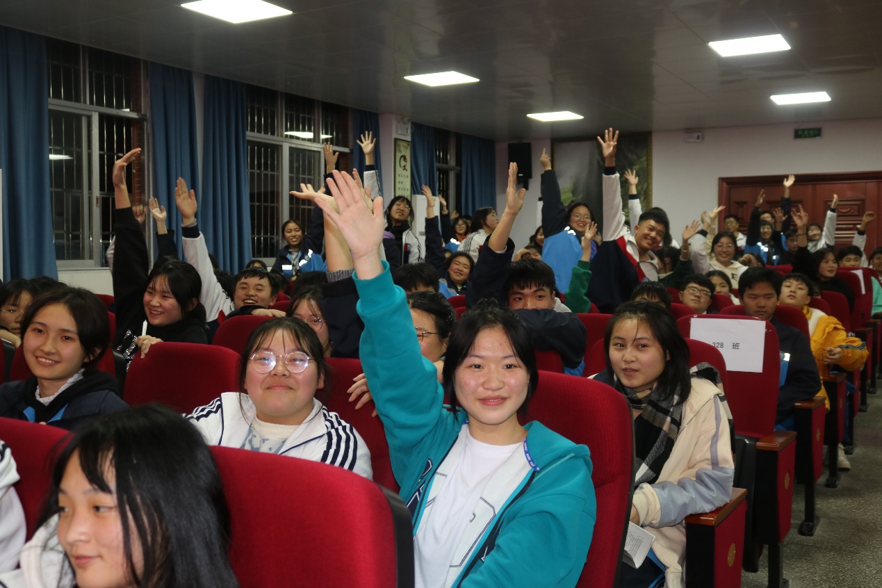 六支决赛队伍分别来自六个班级,决赛现场分为上半场和下半场。上半场题型有必答题、抢答题,下半场题型为必答题、抢答题和风险题,竞赛内容以高二的哲学基础知识为主,政治、经济、文化基础知识为辅。经过认真的准备,各班的代表队伍都胸有成竹,面对问题不骄不躁,沉着应答。在抢答环节各组成员铆足了劲拼手速,台上充满了懊恼声和欢喜声,比赛竞争氛围浓厚。台下的观众也看的不亦乐乎,但也不忘积极参与趣味问答,场面一度热闹非凡。