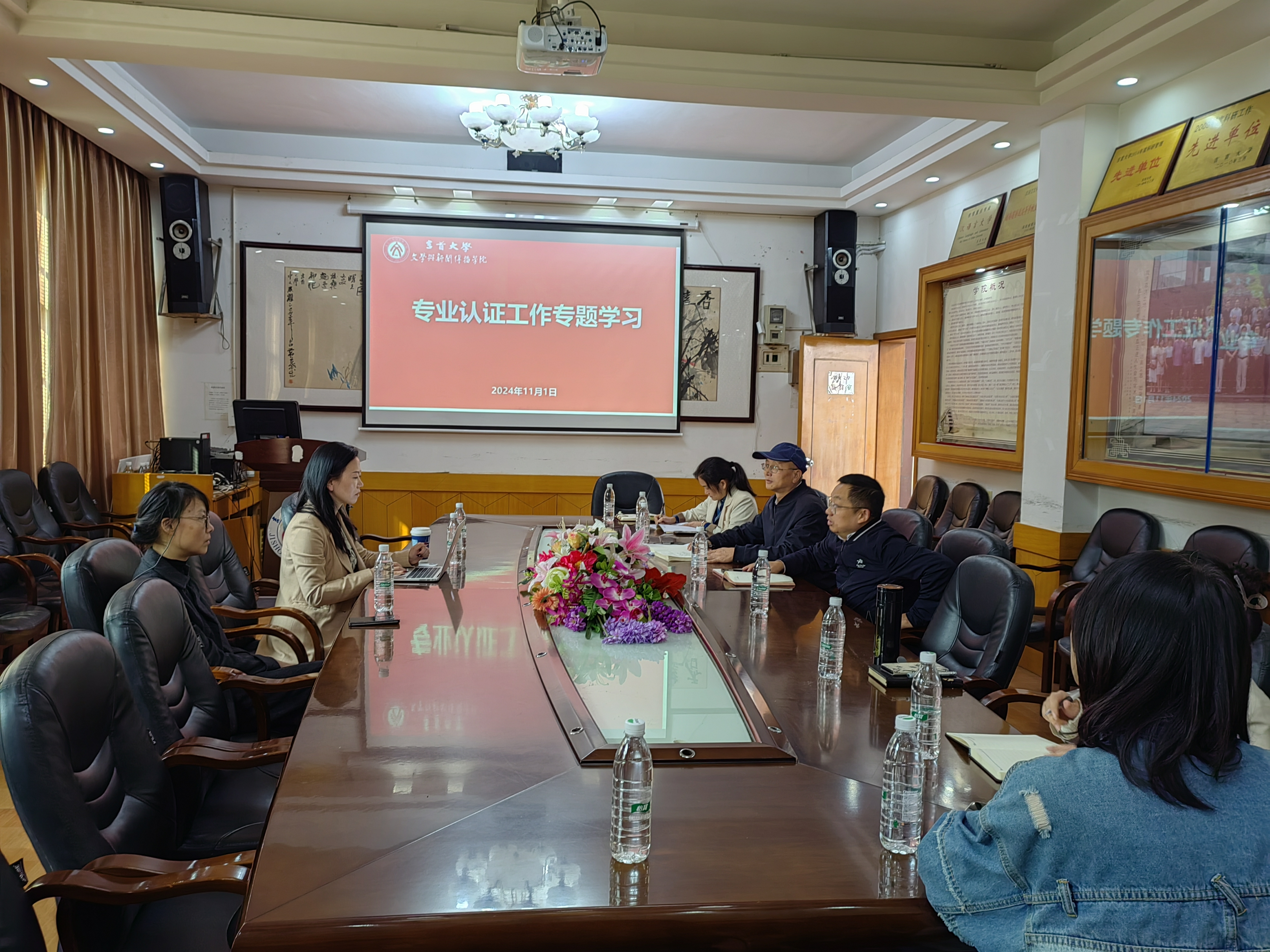 11月2日上午,学院组织院班子成员、师范认证工作小组成员前往数学与统计学院、文学与新闻传播学院学习他们的师范专业认证工作经验。数学与统计学院副经理陈望学、文学与新闻传播学院副经理罗琼分别介绍了数学专业、汉语言文学专业的认证工作开展情况。学院领导老师边听边记,还纷纷提问,交流相关问题。