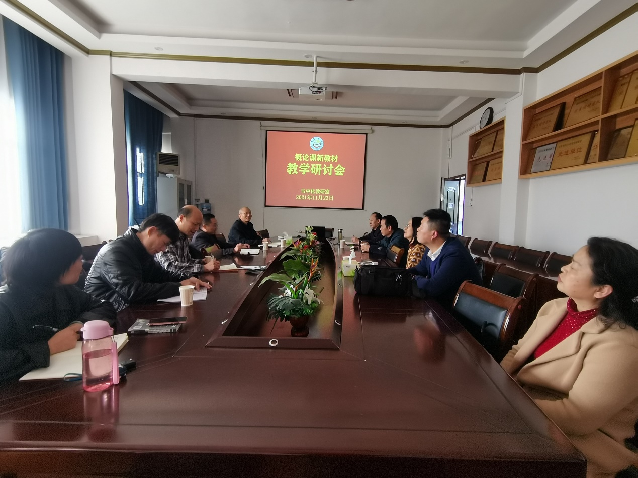 11月23日下午,学院概论课教研室全体老师在院会议室召开《毛泽东思想与中国特色社会主义理论体系概论》教学研讨会。本次研讨会的主要议题是新教材的研究学习,与会教师就《概论》2021版新教材的编写、设计、使用过程当中的心得体会畅所欲言,纷纷提出了各自的教学意见和建议。