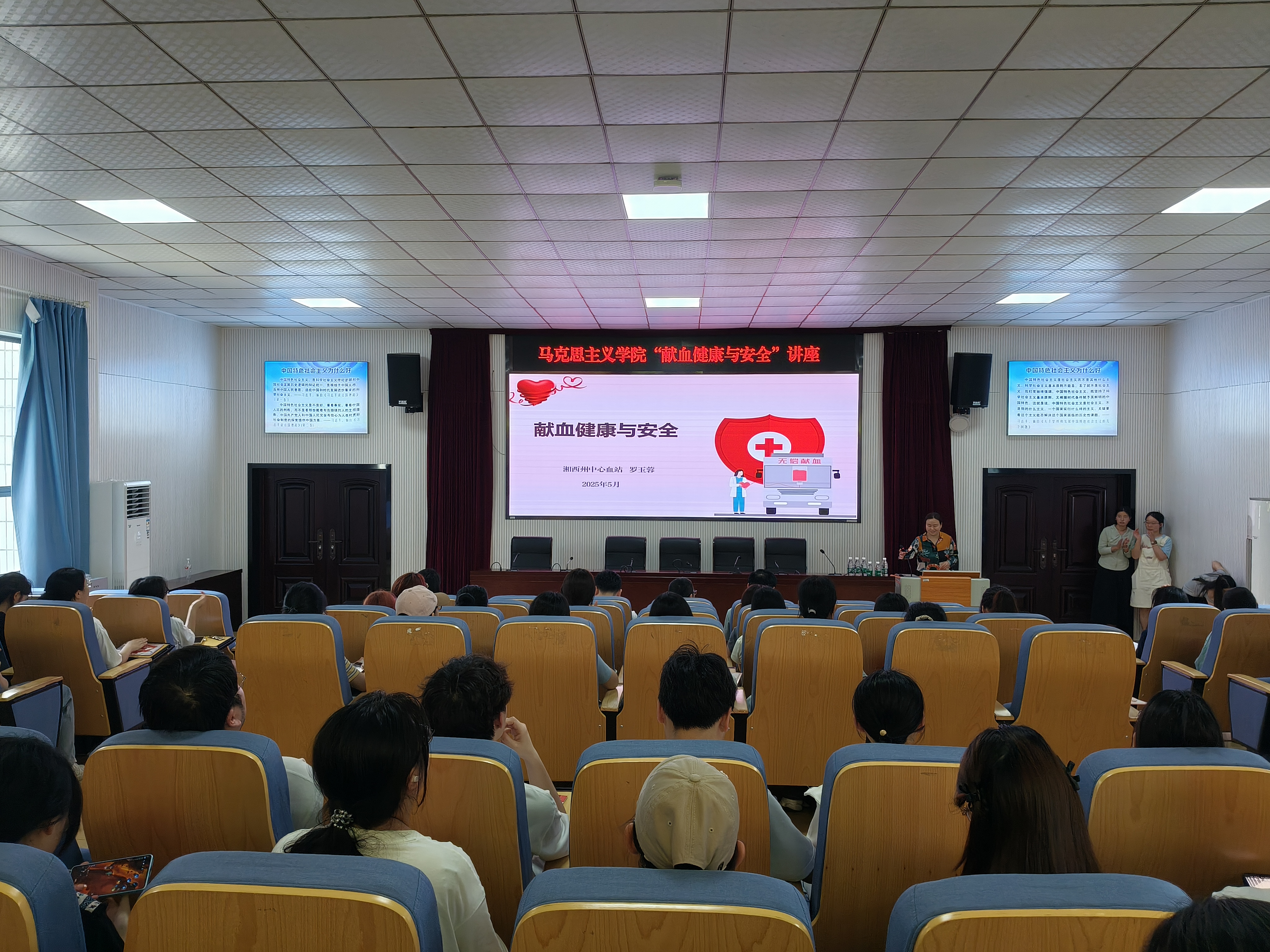 讲座伊始,专家罗玉蓉围绕“献血健康与安全”主题展开深入讲解。她指出,献血不仅无损健康,反而能促进新陈代谢,且血站严格的体检及血液检测流程,可从侧面反映献血者的健康状况。她特别强调无偿献血的公益属性,呼吁在场师生积极参与,以实际行动为社会公益贡献力量。