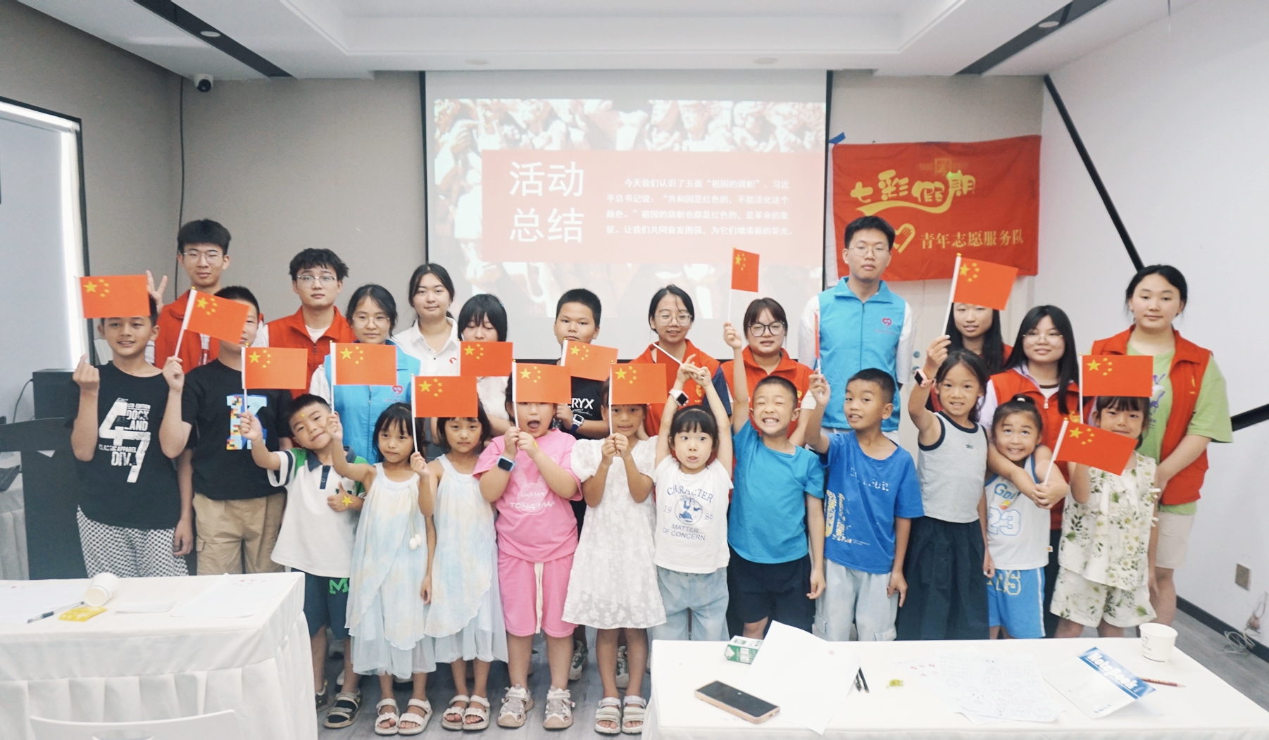 (图为志愿者与小朋友们集体合照)