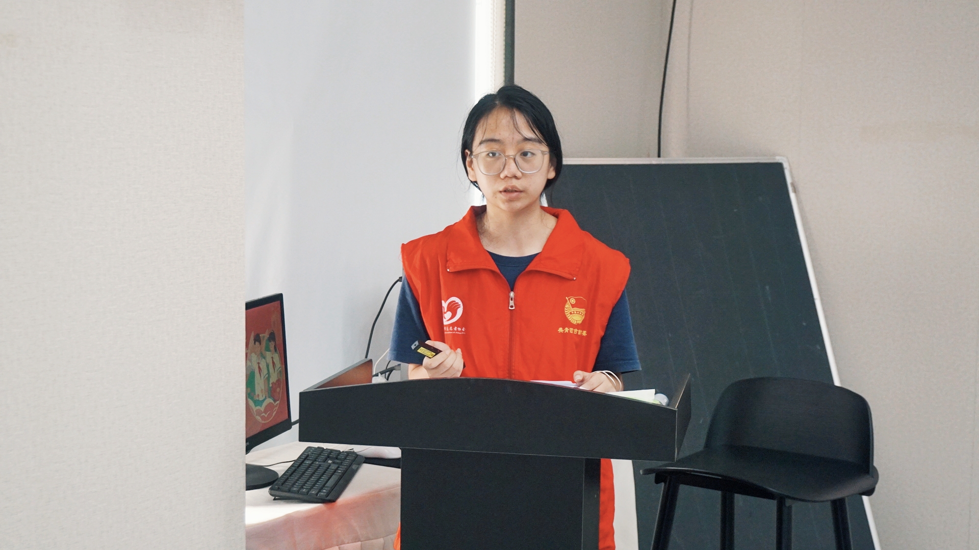 (图为团队负责人王雅琪主持开班仪式)