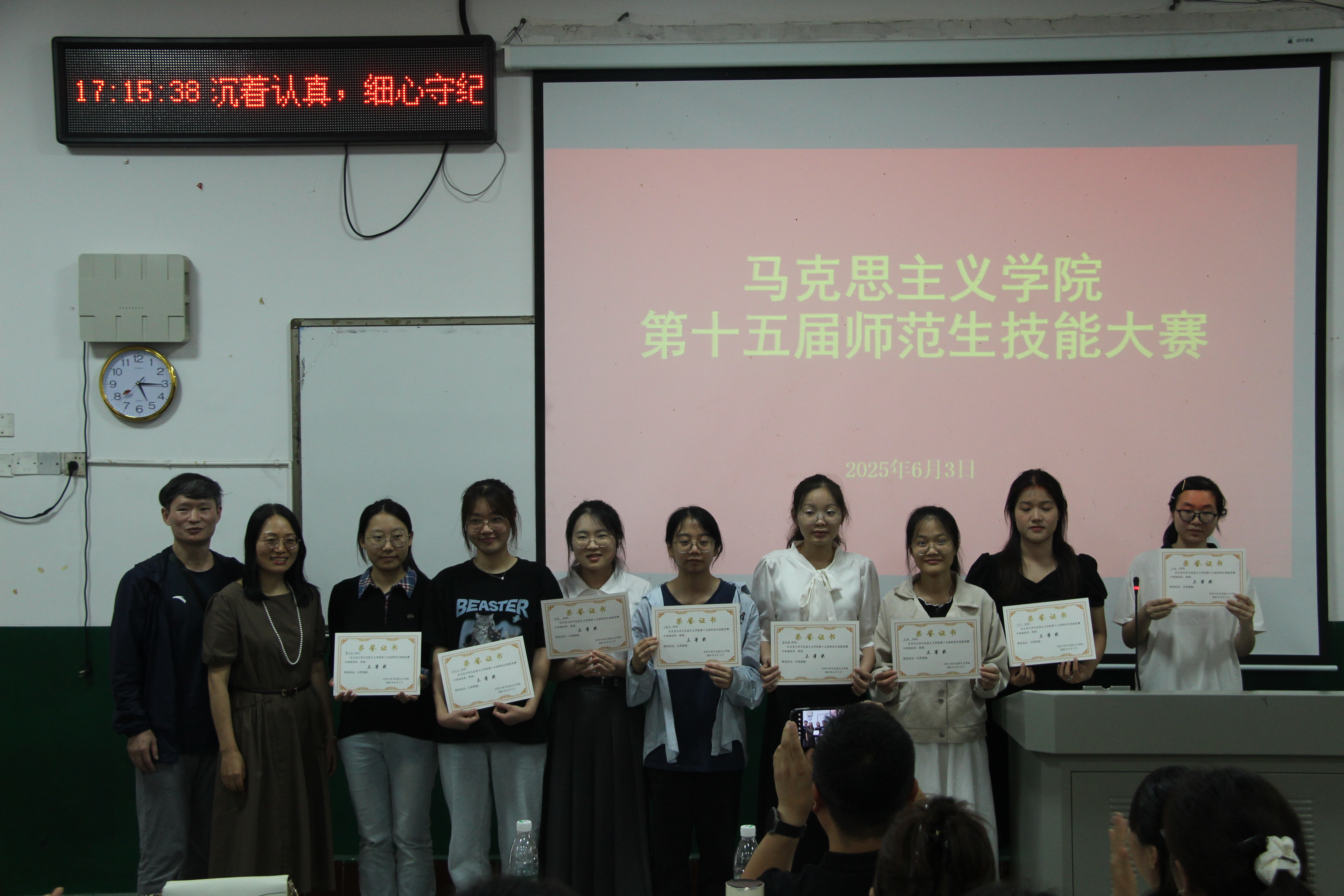 活动临近尾声,评委老师在总结点评中对选手们的精心准备和出色表现给予了充分肯定,同时也对教学设计深度、课堂互动技巧、教育理论应用等方面提出了宝贵的提升建议,勉励所有师范生不断精进教学技能,为未来成为优秀思政教师打下坚实基础。