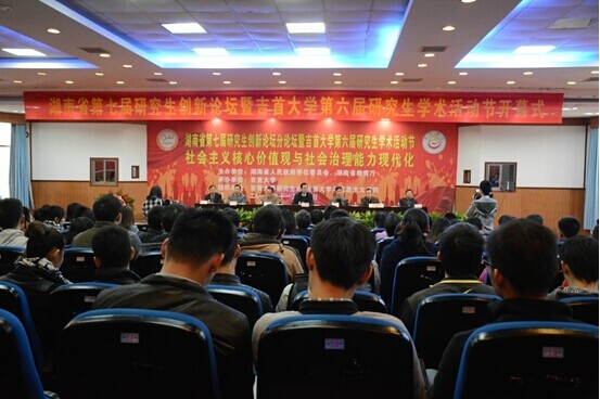 以“探索与创新”为主题的湖南省研究生创新论坛是全国继上海、江苏等之后的少数几个省级研究生创新论坛,是由湖南省人民政府学位委员会和湖南省教育厅主办的全省研究生学术交流盛会,旨在进一步推进湖南省研究生教育创新工程的实施,促进研究生学术交流,提高研究生创新意识和创新能力。湖南省研究生创新论坛自2008年举办以来,主论坛一直由国防科技大学承办。本届2014年论坛共设12个分论坛,学科涉及面广,研究生参与性强,为全省各高校研究生开拓学术视野、促进学术交流、推动学术创新提供了宝贵平台。公司创新论坛分论坛的主题为“社会主义核心价值观与社会治理能力现代化”,共设社会主义核心价值观与文化软实力;社会主义核心价值观与党的执政能力;社会主义核心价值观与法治中国;社会主义核心价值观与新闻舆论传播;社会主义核心价值观与社会治理创新,涉及文学、民族学、哲学、历史学、体育学、法学、经济学、马克思主义理论等学科。