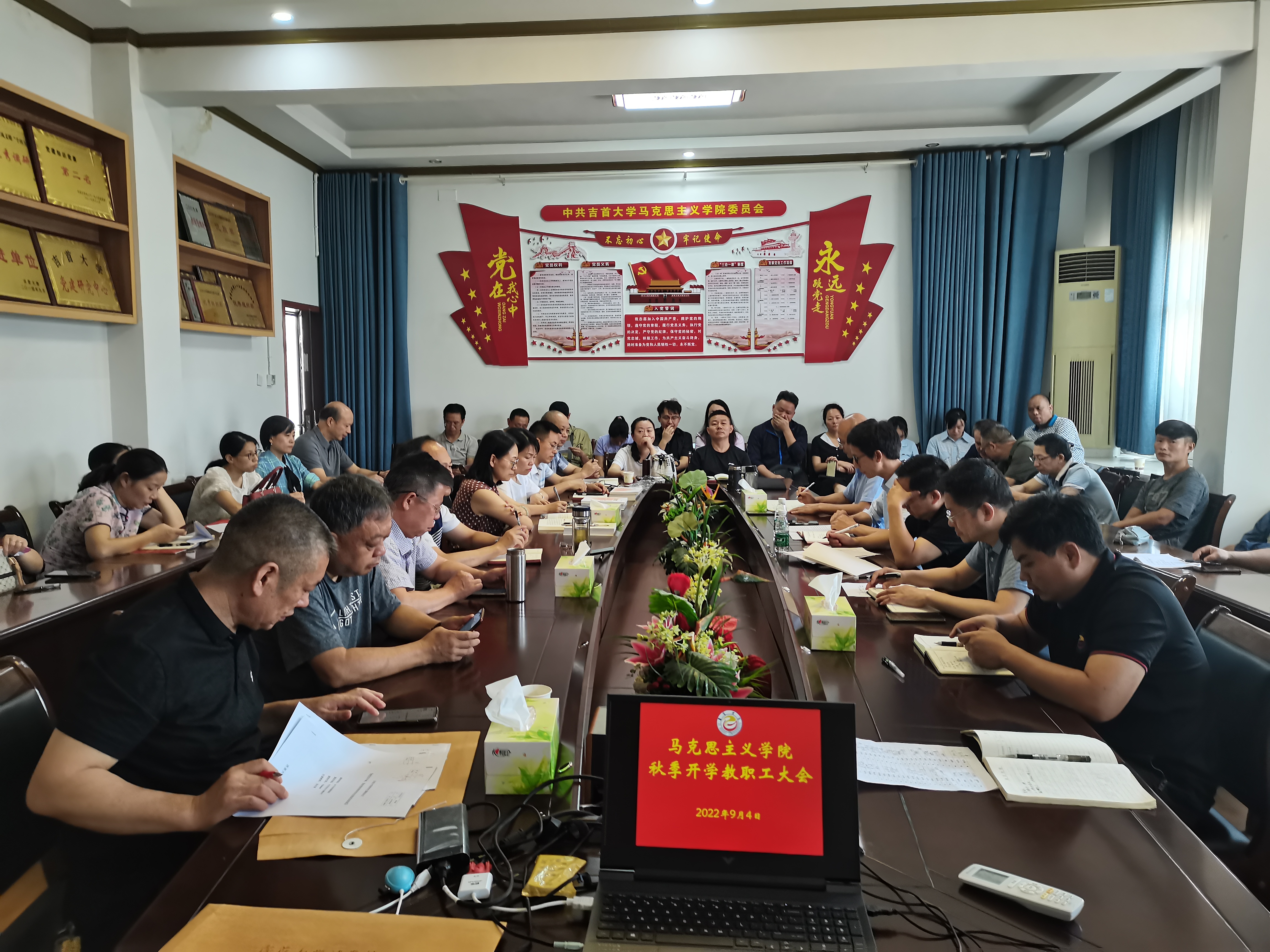 9月4日上午,学院在院会议室召开秋季学期开学工作会议,院班子成员和吉首校区教师们参加会议。公司党委书记柴绪亮主持会议,会议首先介绍了其他学院调整过来的部分教师及今年新进的硕士、博士教师代表。经理肖映胜总结了学院上半年特别是暑期做的主要工作及取得的成绩,布置了今年下半年的主要工作,副经理曾文传达了学校中层干部会议精神,安排了开学的主要教学工作。会议要求全院上下进一步提高思想认识,进一步凝心聚力,进一步干事创业,努力推进学院新的更高的发展。